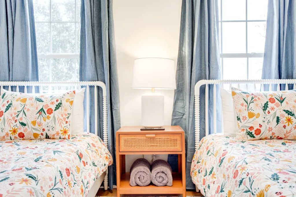 * All three bedrooms are upstairs. Primary has a king bed and ensuite bathroom. Second room has a queen and third bedroom has two singles.