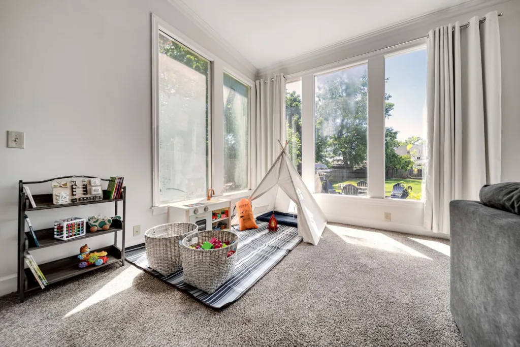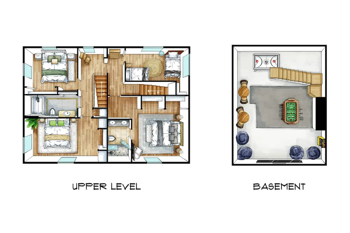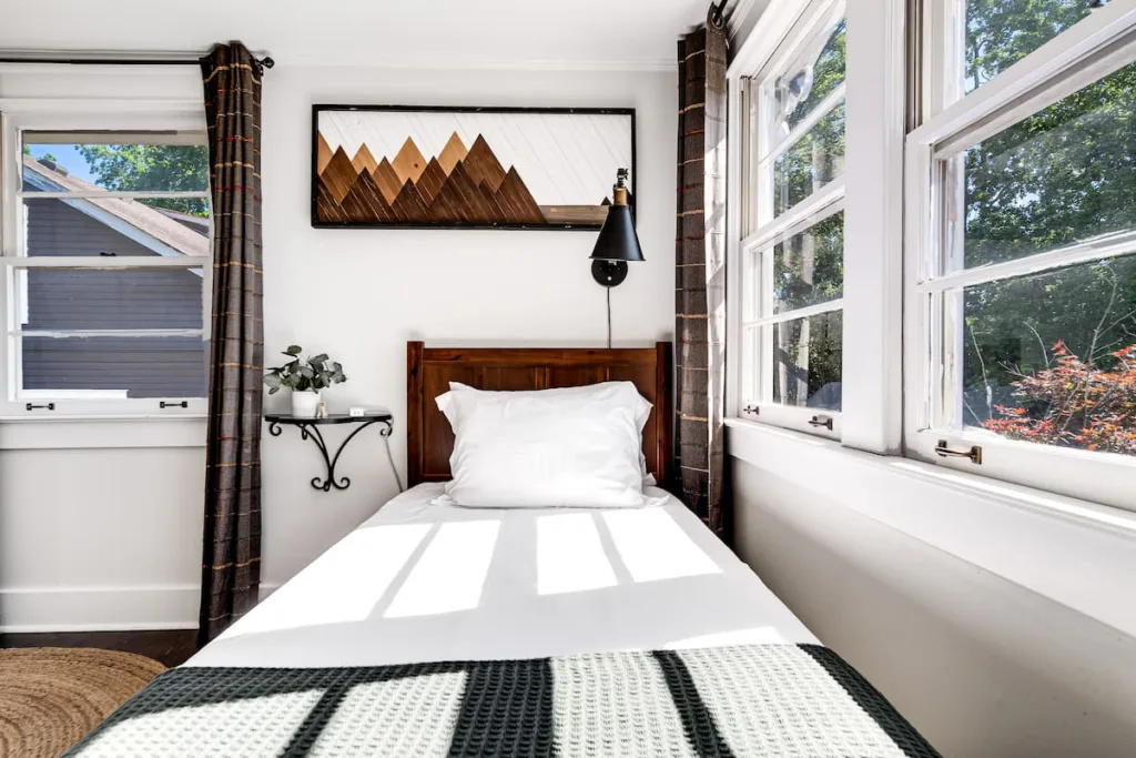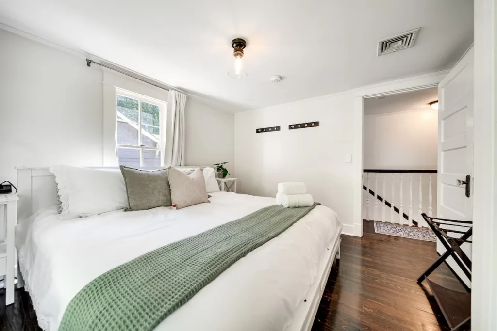 This family-friendly Franklin home features 5 comfortable bedrooms — 4 upstairs and 1 downstairs — ideal for large groups. Three rooms have king beds, one offers a twin + twin XL, and one includes a twin trundle (2 twins). All bedrooms are thoughtfully furnished for rest and relaxation.